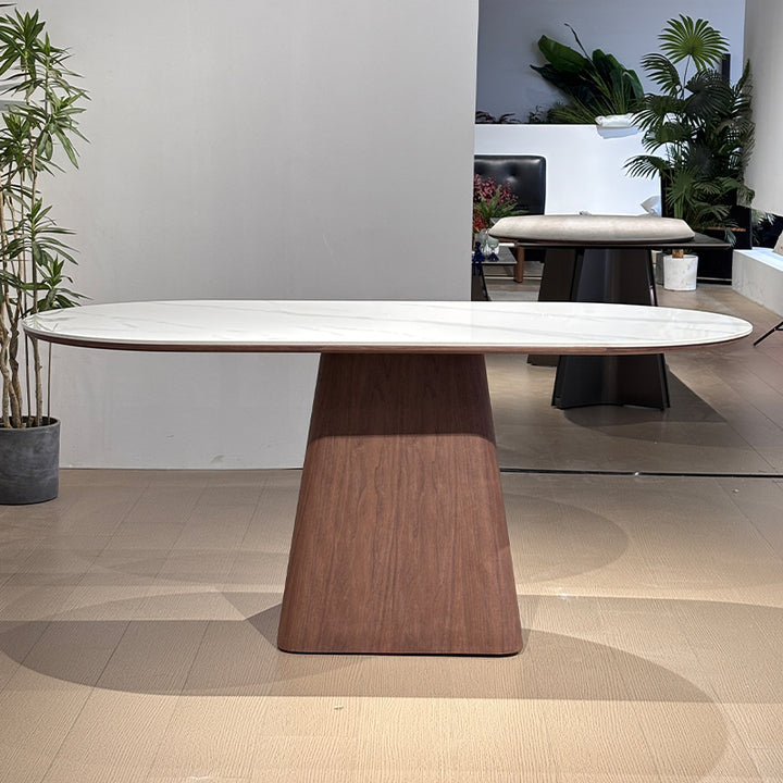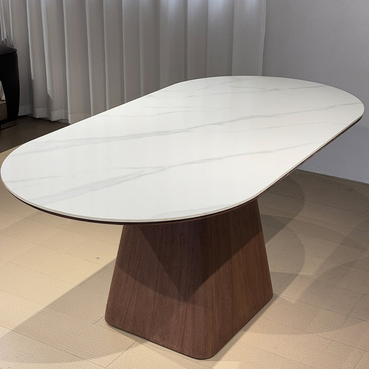 Rounded edges, clean lines, and a smooth finish make this table a minimalist design must-have. Whether you are creating a monochromatic palette or need a dining room table that fits friends and family this piece is sure to meet your needs.