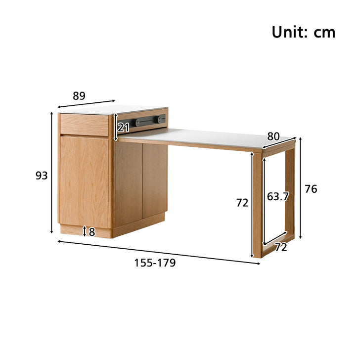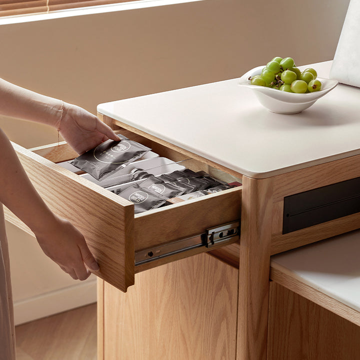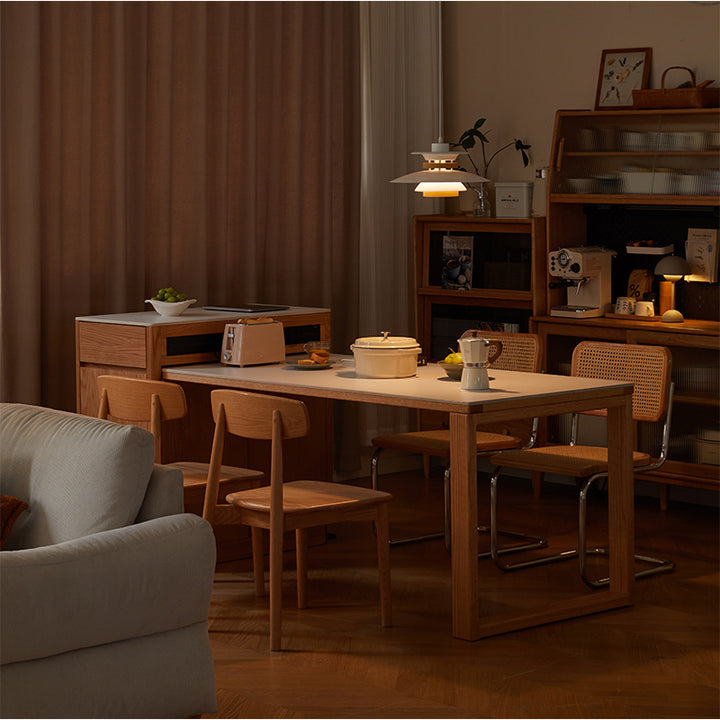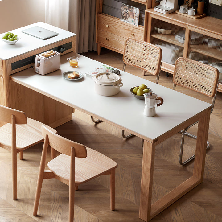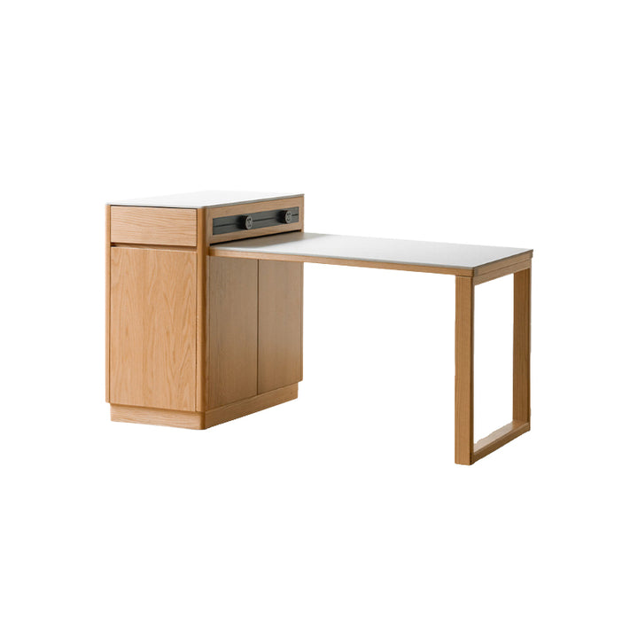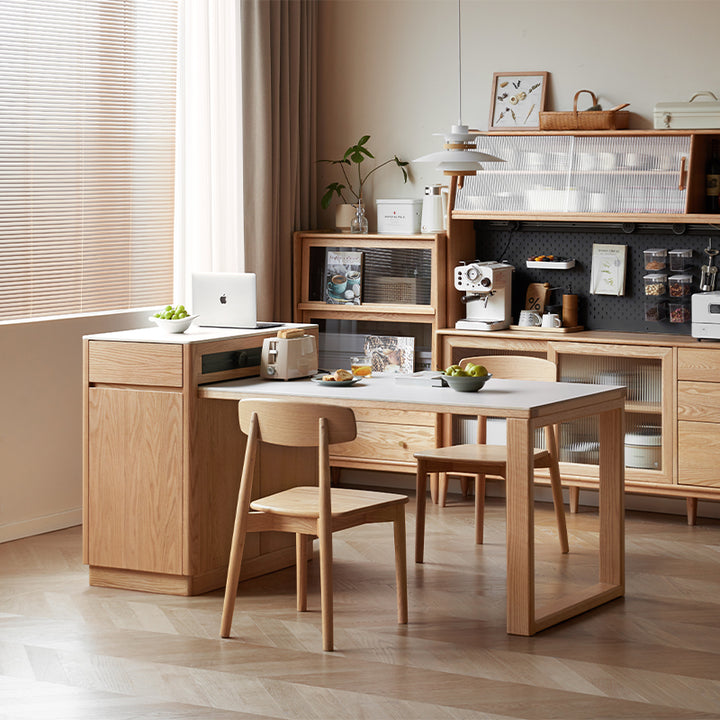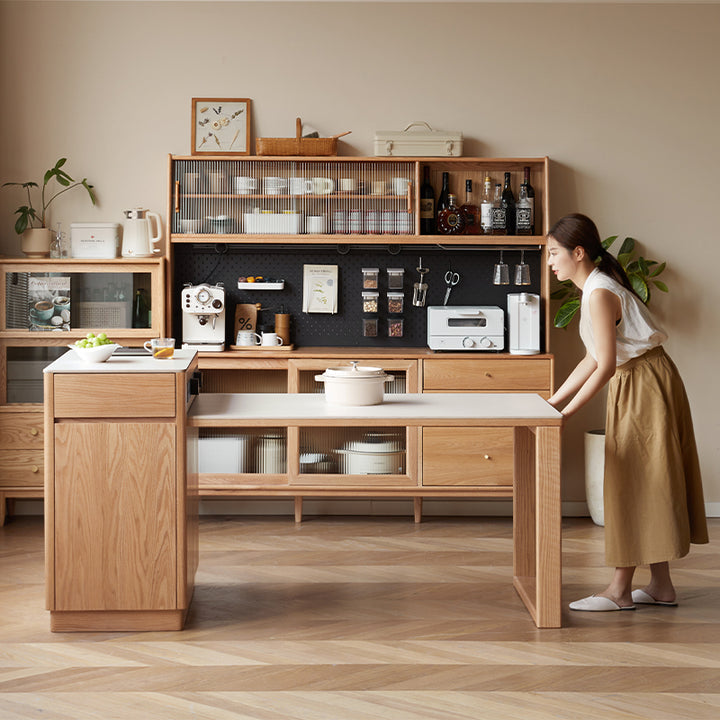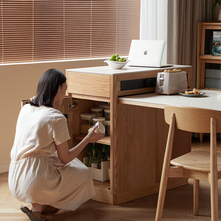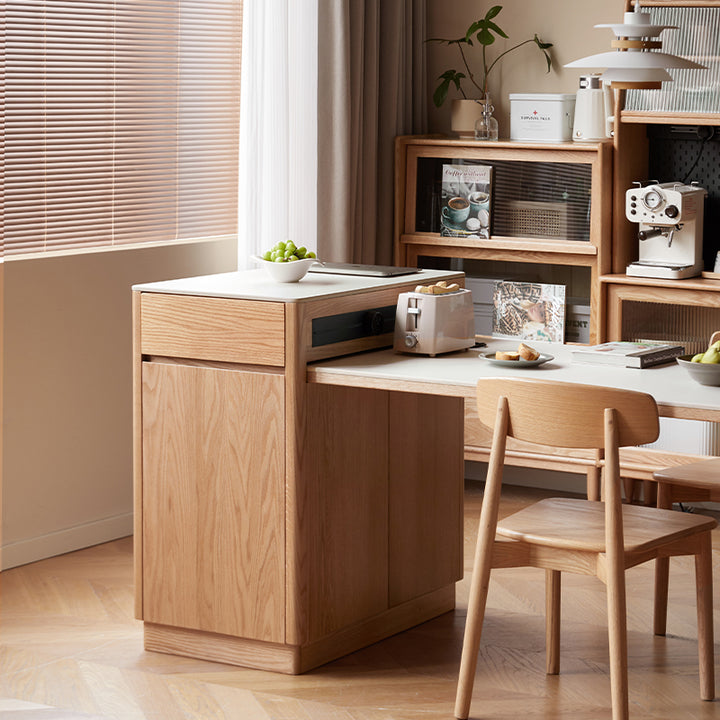 Casey FAS-Graded Solid American Oak Wood Kitchen Island with Extendable Ceramic Dining Table