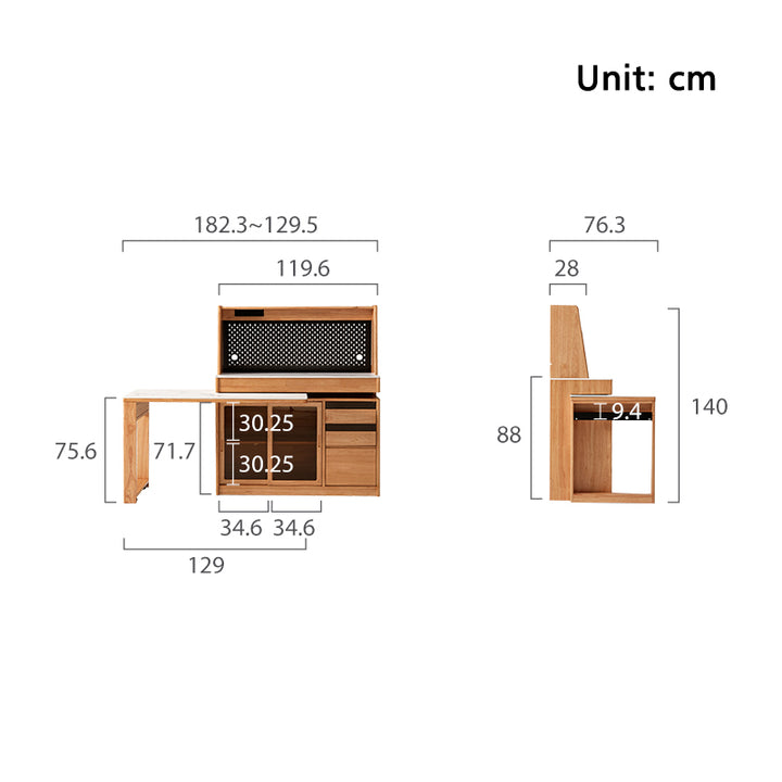 • 1.2m: (129.5-182.3)W x (76.3-145.5)D x 140Hcm