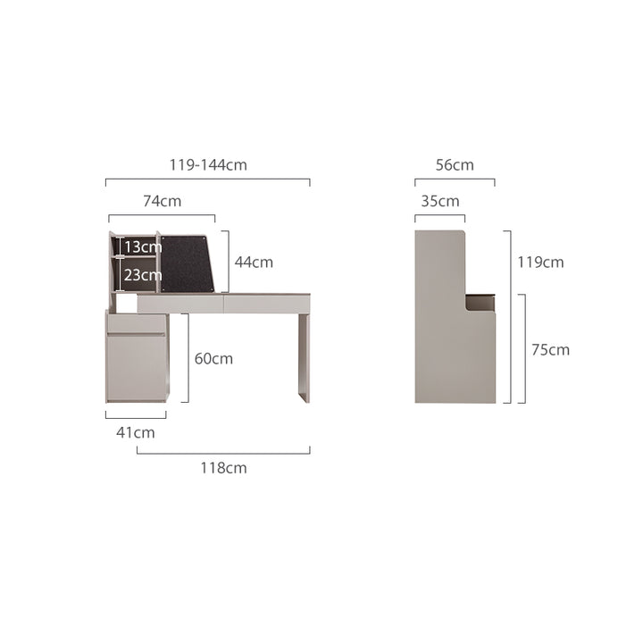 - Table: (119-144)cm W x 56cm D x 119cm H