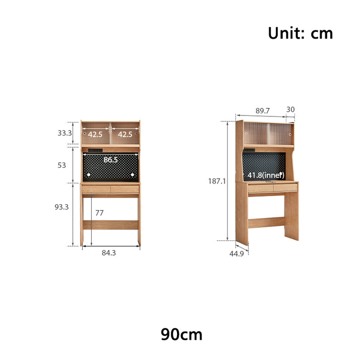 - 90cm: 89.7W cm x 44.9D cm x 187.1H cm