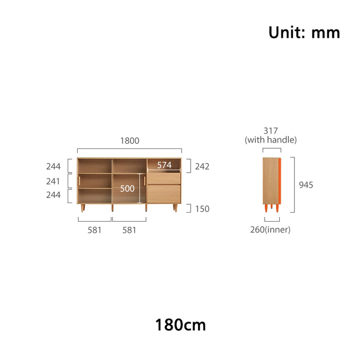 • 1.8m: 180W x 31.7D x 94.5Hcm