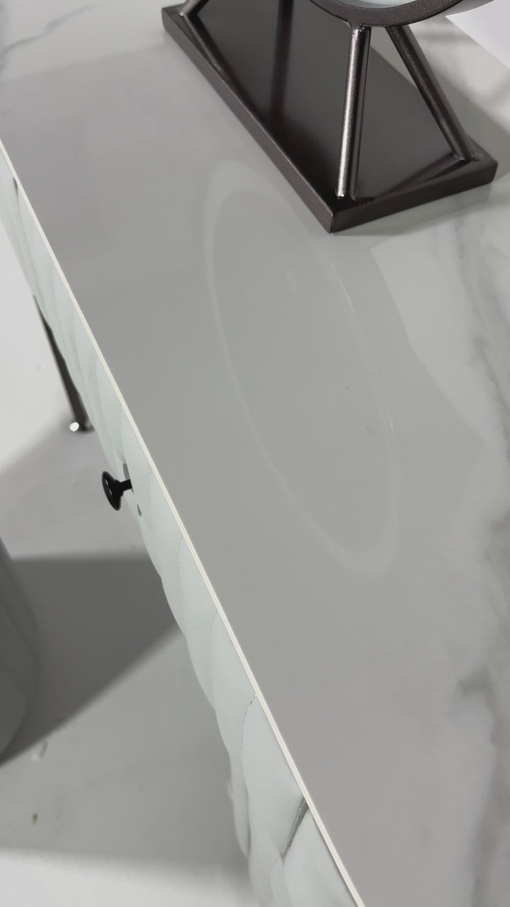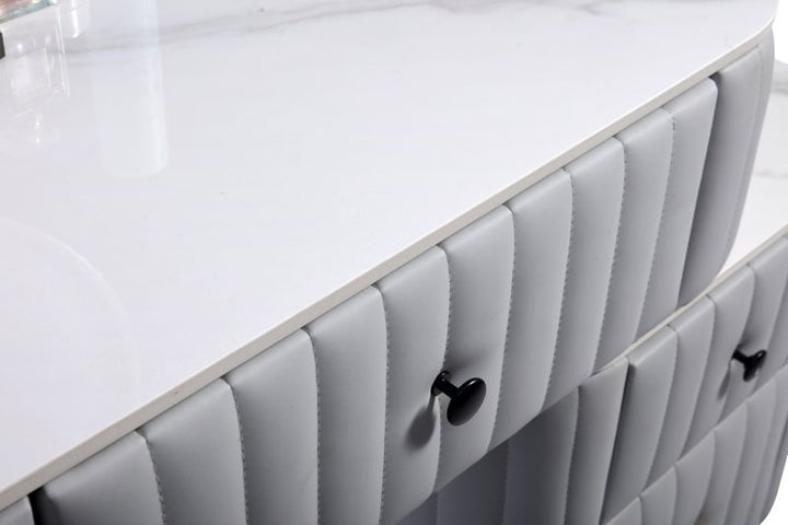Mimow Leather Bedroom Vanity with Ceramic Tabletop/Dressing Table Set with Small Cabinet
